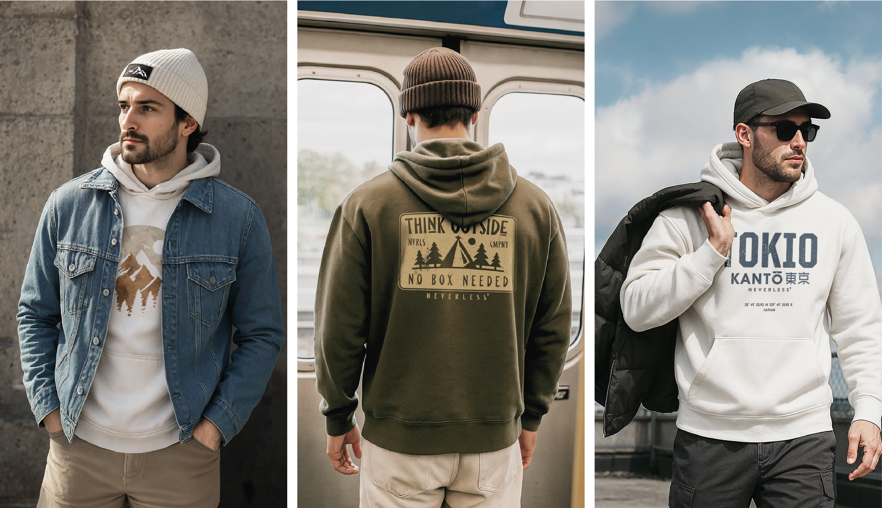 Hoodie Herren Outdoor Print Natural Badge Logo Wandern Kapuzenpulli Fashion Neverless®