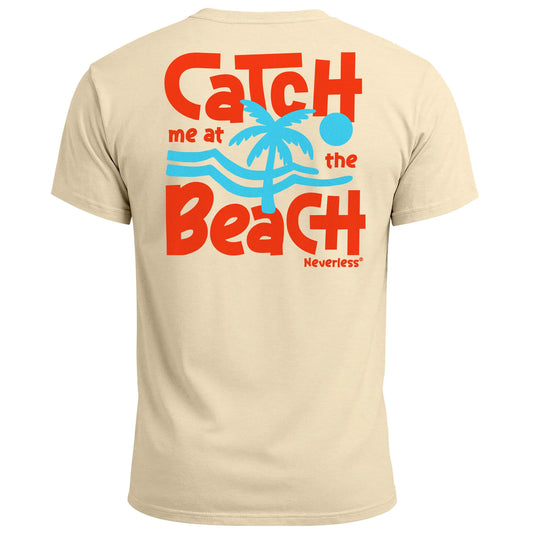 Herren T-Shirt Backprint Catch Me at the Beach – Sommer Funshirt mit Palmen Print Retro Schriftzug – Strand Grafikshirt Fashion Streetstyle Neverless®