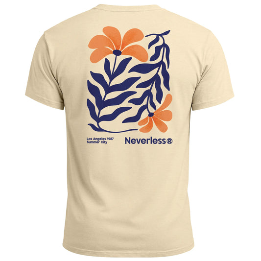 Herren T-Shirt Backprint Rückendruck „Los Angeles 1987“ – Botanical Design – Kurzarm Baumwollshirt mit Grafik Floral Fashion Streetstyle Neverless®