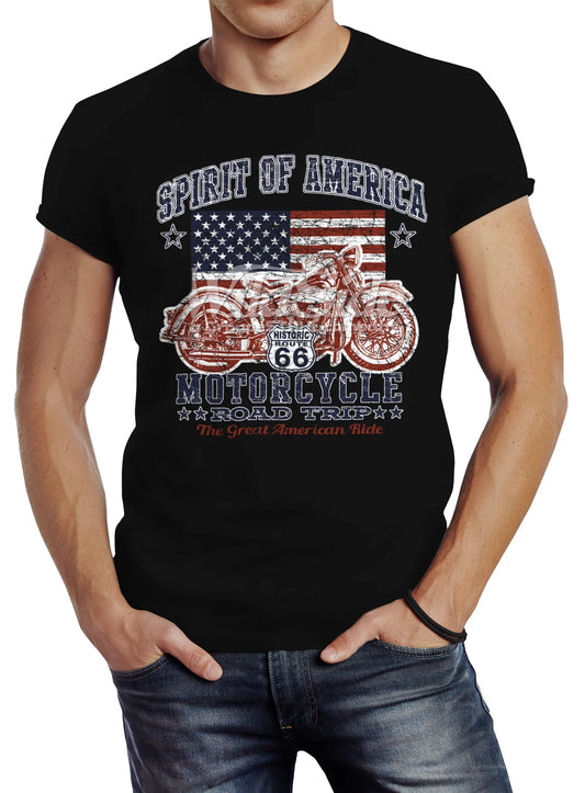 Herren T-Shirt Biker Shirt Amerika Flagge Motorrad Motorbike Slim Fit Neverless®