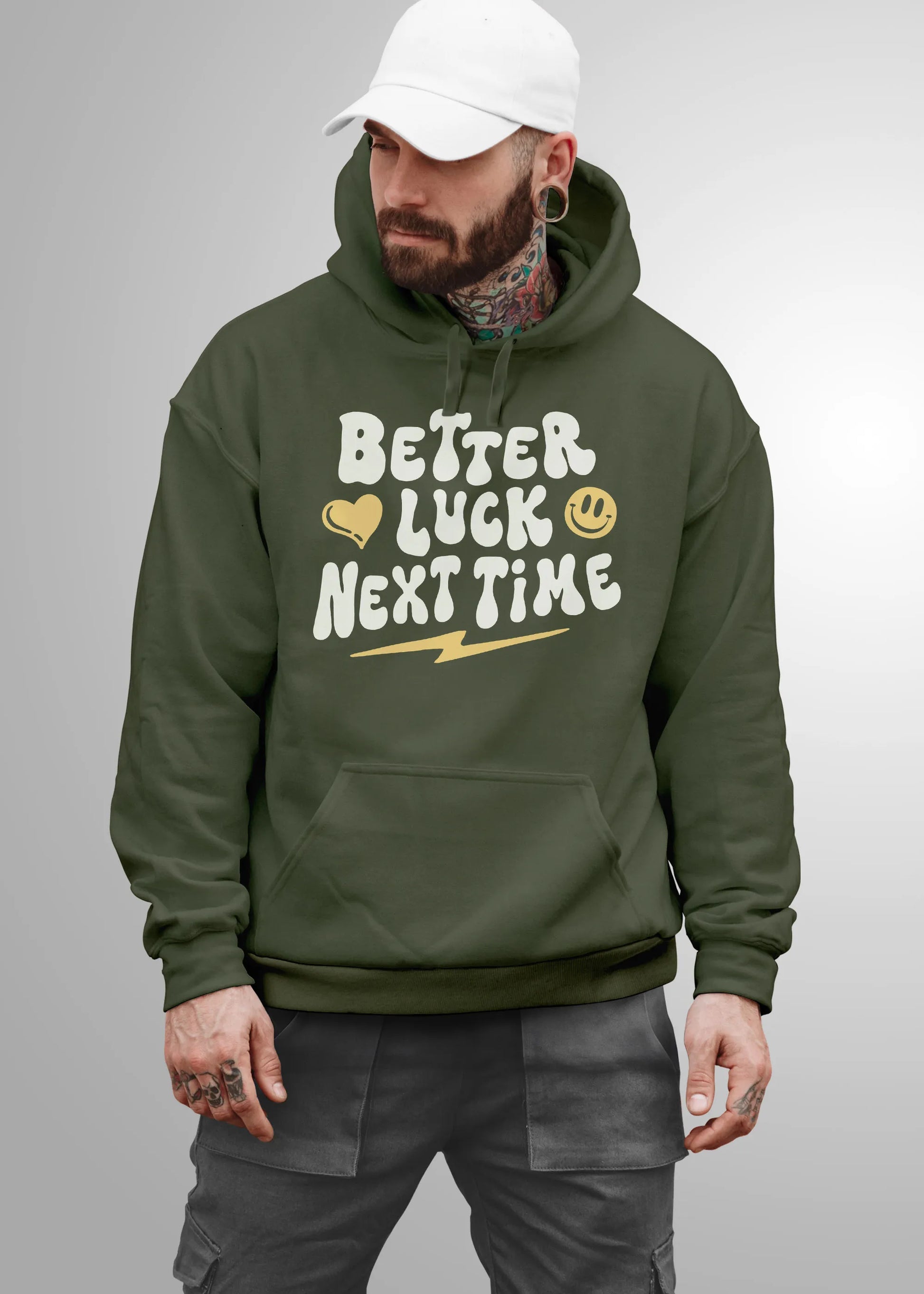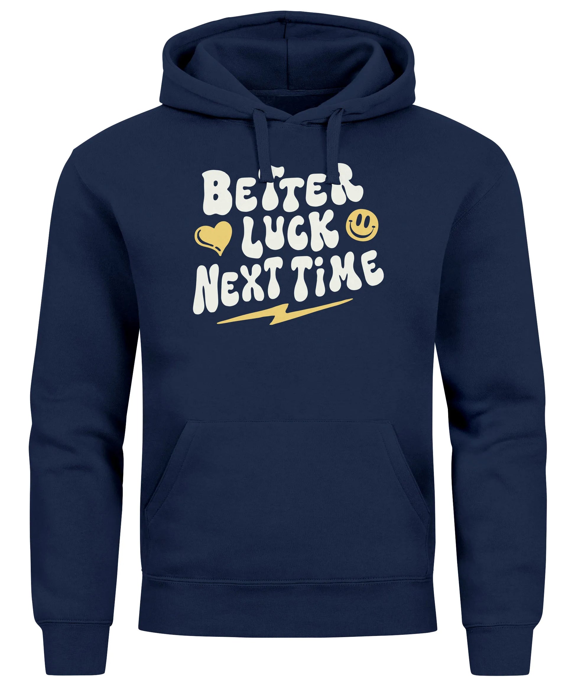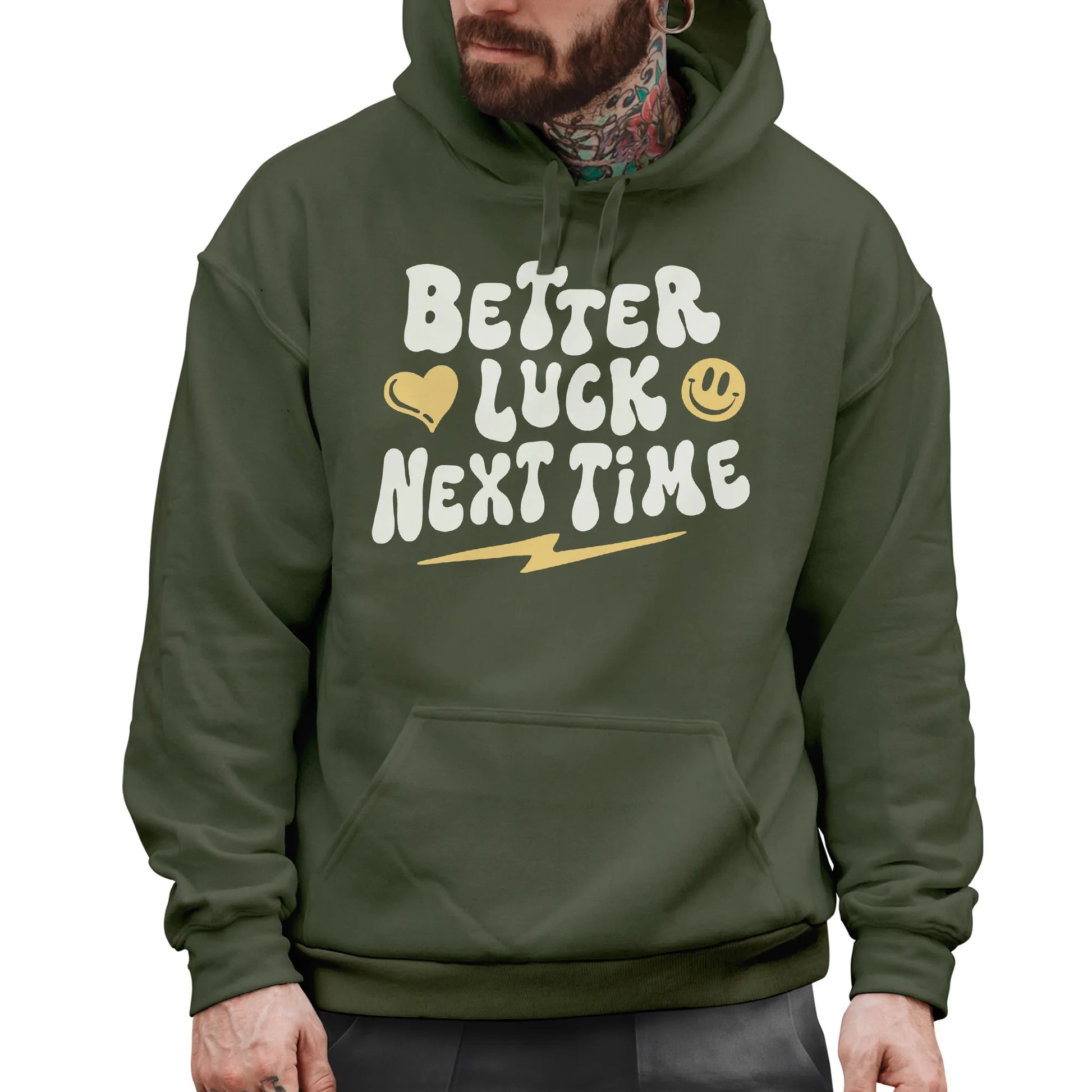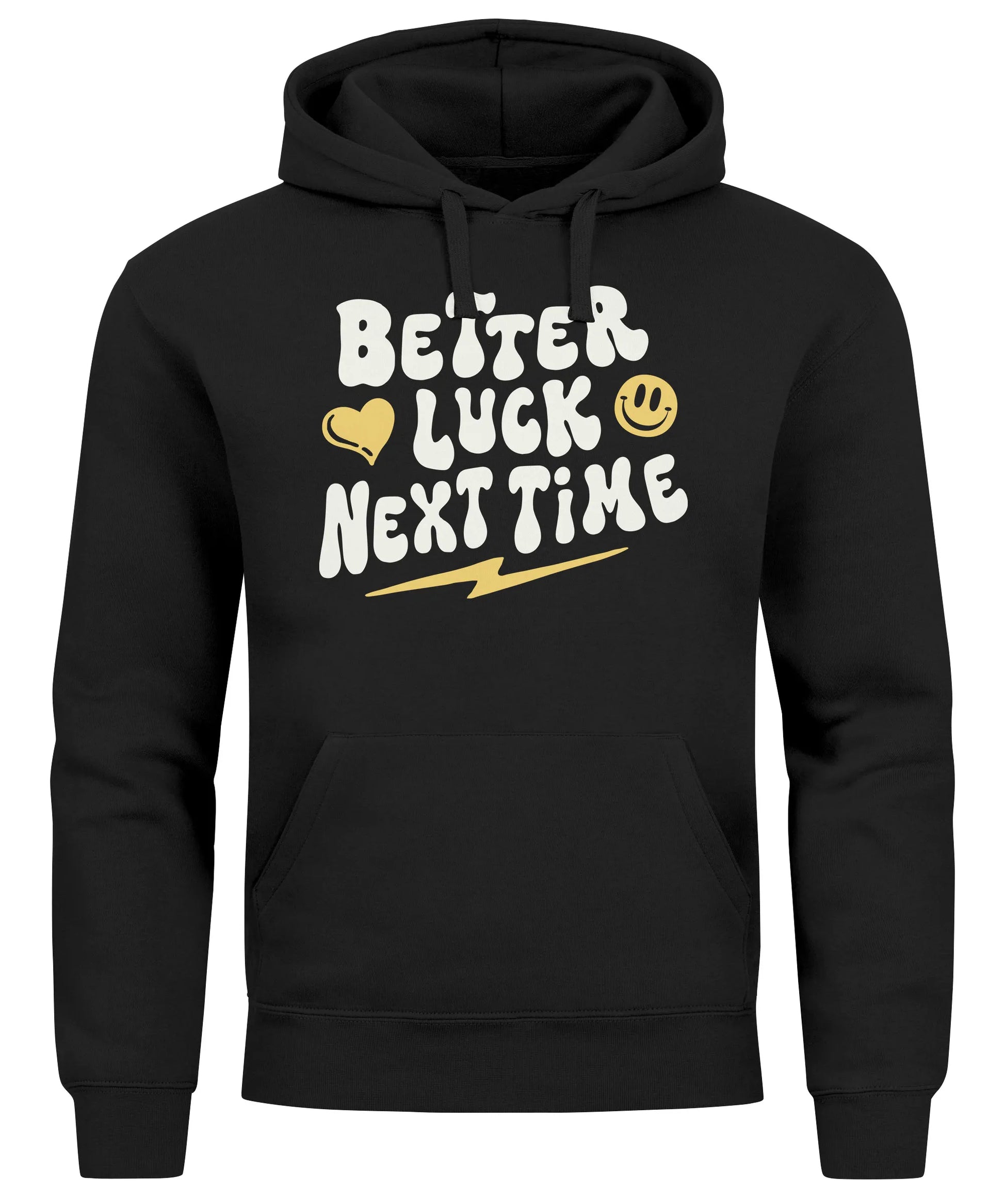 - Mach dein Outfit zum Hingucker mit unserem Kapuzenpulli bedruckt mit Spruch für Männer. Mit witzigem Statement "Better Luck next Time" ist dieses Oberteil ein Must Have für alle die ausgefallenGrafik-Oberteile lieben